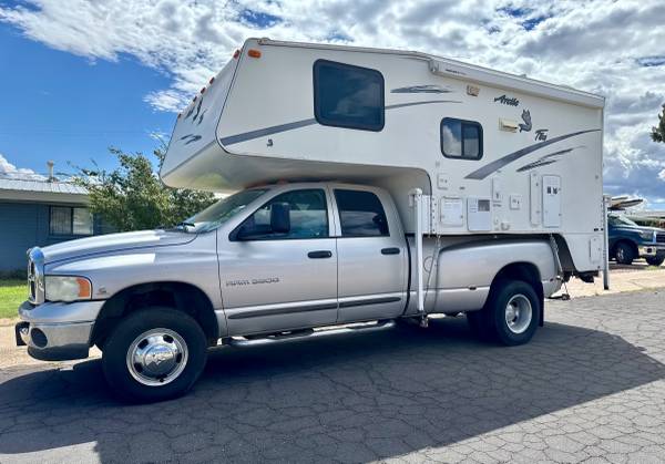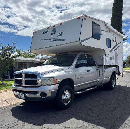 I have a well cared for 2004 Dodge Ram 3500, SLT trim, Quad Cab, 5.9 L HO Cummins Turbo Diesel, Long Bed, 1 Ton Dually. This is an Arizona pre- emissions truck with no rust and with very low mileage 89,496. ***Price is for TRUCK ONLY, if interested in the Arctic Fox camper, this can be negotiated separately.