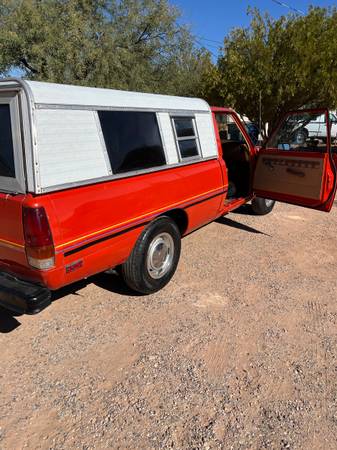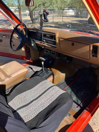 I am the second owner of this truck purchased in May. The original owner was a rancher in Oracle who worked for the department of defense, and this truck was only used as his fishing truck to drive up Mt. Lemmon (about 1,000miles a year). He did all the work on this truck when he had it and kept it in impeccable shape. It has a little over 42,000 original, actual miles on the Japanese Mitsubishi engine. I met a guy who just rolled over 450,000 miles on the same engine with no signs of stopping. Maintenance done on time, every time, and there are even the labels the original owner put on things in the truck so he knew when maintenance needed to be done. Only ever had 91 octane premium gas run through it. He had a custom shag carpet camping set up installed in the back when he bought it, which has storage underneath the removable center panels, and in the side compartments. The interior is in almost new condition, with the only real flaws being the one crack in the dash and the few tears in the driver seat. All original glass. The windshield had a ding in it when I bought it, which I had serviced and filled with resin. There is a town hitch setup I’ve never used, as my kid and I camp in the back and it’s perfect. We’ve driven this thing all over the state and it can be driven to NY and back with full confidence. I have put a ton of work into the truck since I bought it to make it as such, including the AC conversion!