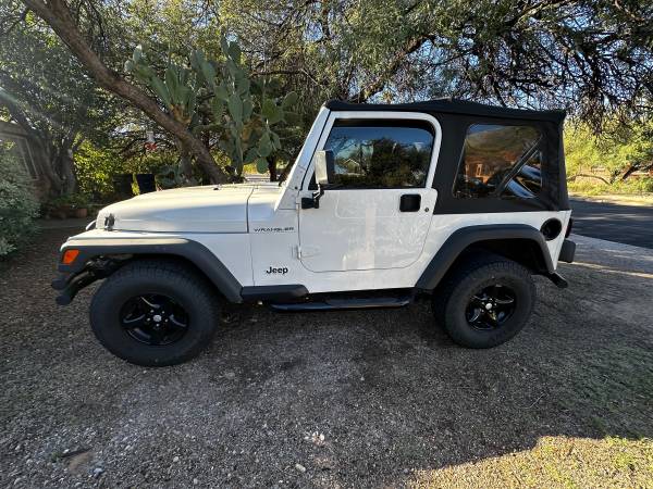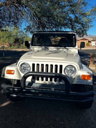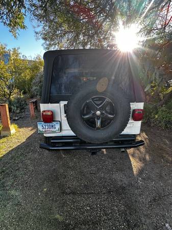 Selling as is 1997 Jeep Wrangler SE. 2.5L engine. 5 speed manual. Currently has Indiana title since recently relocated to Tucson. 217,000 miles. Vehicle has check engine light on currently for codes P0138, P0141, and P0441. A/C does not work. Power steering leaks fluid. Soft top.