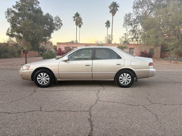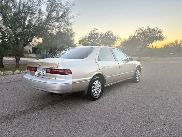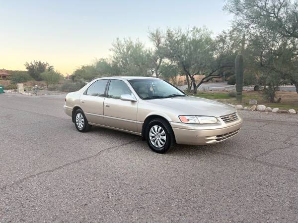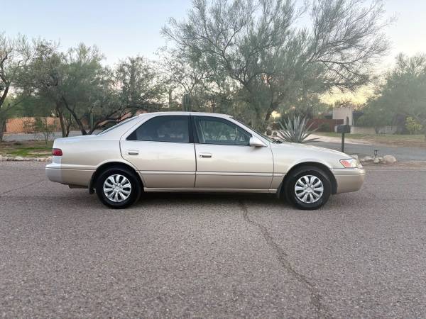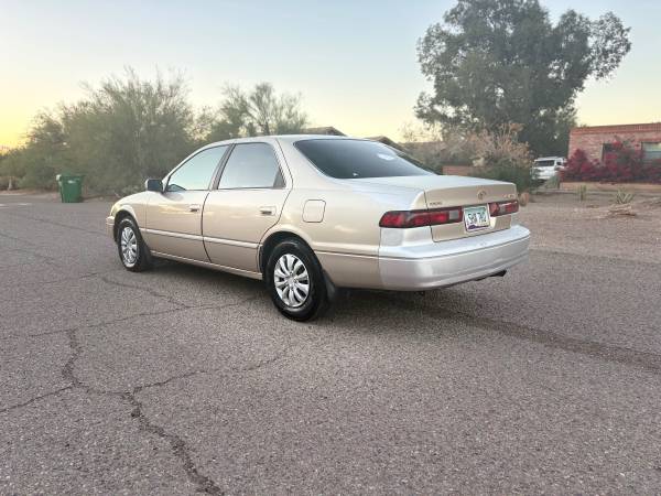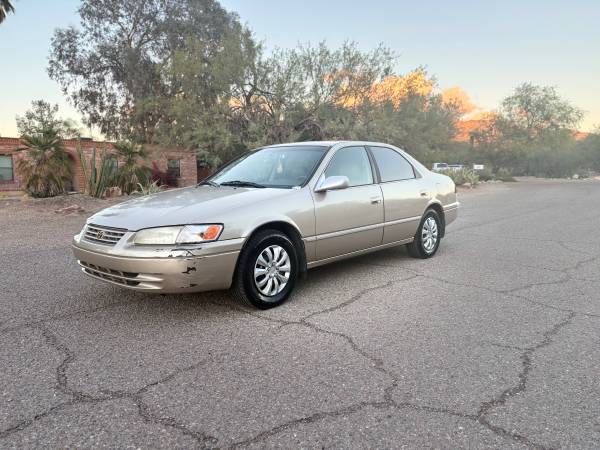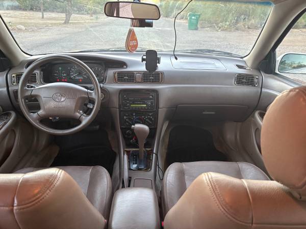 Hello, we decided to sell our grandfather‘s 1998 Toyota Camry LE Run drives great no issues power windows, power locks cruise control dash cam Super clean on the inside only has 100,000 original miles. We have a whole bunch of documents showing that we replaced it a lot of stuff recently and it has warranty clean Arizona title ice cold AC and heater works. Have over $4000 and stuff that we replaced it on the vehicle. Do you have documents? Pat’s admissions no problem. It’s good for a 2027. Tires are new oil’s been changed. Every 3000 miles oil was just changed recently. Replaced the gaskets.