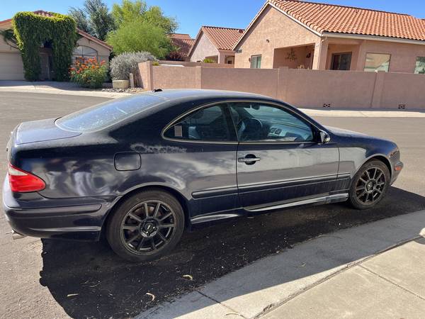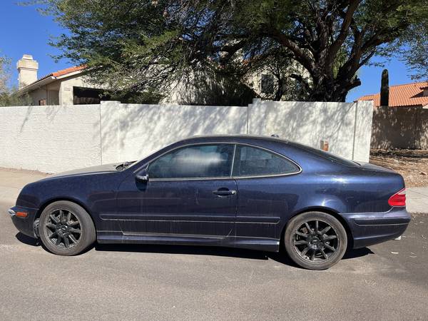 2002 MERCEDES-BENZ CLK COUPE — DARK BLUE (CU, BLACK RIMS), 99,009 MILES. CLEAN TITLE. TWO KEYS. TINTED WINDOWS. CUSTOM REAR BADGE. FRONT BADGE MISSING. NEW TIRES (SUMMER 2024) & RIMS (SUMMER 2024). NEW BATTERY (AUGUST, 2025). LEGAL CUSTOM EXHAUST. LOUD COLD START BY DESIGN (SOUNDS LIKE A HELLCAT). PRIOR OWNER DRESSED IT LIKE AN AMG; IT’S A STANDARD CLK COUPE UNDERNEATH.
