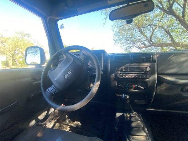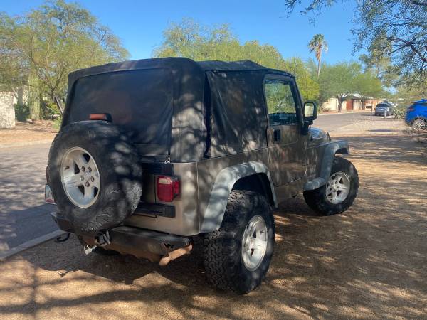 I've owned this jeep for 14 years and have the maintenance records. Not lifted/Stock height. 4.0L 6 cylinder. Cold AC. Soft Top. 5-speed manual transmission. Sport Model. Tires are in good condition (30 X 10.50 BFG All Terrain). Heater core bypassed. $7,400 obo.