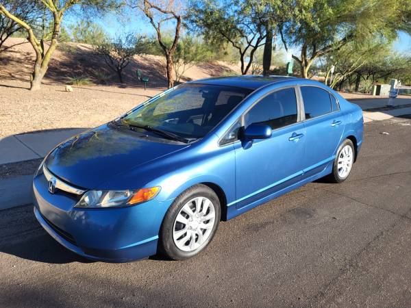 Hello we are selling our 2008 Honda Civic LX,automatic,has a clean AZ Title,only 103,000 actual miles,the inside of the car is spotless and clean,blows ice cold ac,heater works,has cruise control,the paint is in great shape,garage parked when not on the road,digital dash,remote alarm,recieved full tune up and 90,000 miles,always maintained regularly,zero accidents,we can share a copy of the current carfax and complete service history in person,remote alarm,2 keys,this Honda has been well maintained,passed emissions already,all functions work properly ,has no mechanical issues,you may bring your mechanic if you like,we are asking $8,200 Or Best Offer,please call or text show contact info