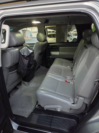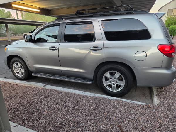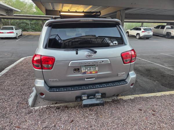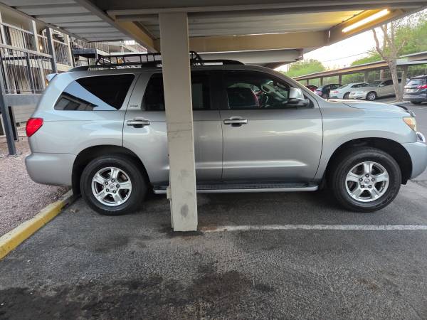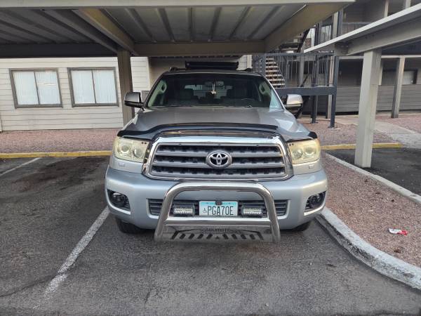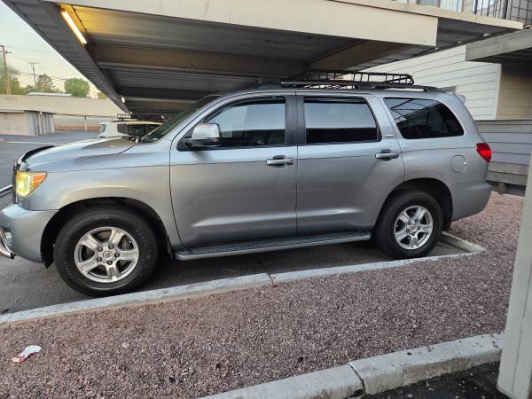 2008 Toyota Sequoia SR5 with 239800 miles. Car is equipped the same as the limited model and in great condition with many extras. The rear suspension has automatic air or manual leveling air bags, Air intake and exhaust to match giving more air flow for the engine increasing gas mileage. Automatic transmission with six (6) gears. Comes with a complete trailer package. Chrome bully bar with two led spotlights and fog lights in the bumper. I added rear spotlights for backing up made easy. Car has front and rear cameras, and front and rear safety bumper sensors. Bridgestone tires have about 9000 miles with alignment and balancing done often. Front struts and rear shocks replaced about 20,000 miles ago. Interior has leather seating with a third row. Front seats have heat and are fully automatic. Has cruise control, traction control, automatic temperature control for front and rear seating. Second and third row seats can be lowered for more space to load big items and has a hidden storage space in the back for tools. Powered rear window gives easy access. Extended roof rack good for storing additional luggage. Car has been maintained at all times and runs perfect. There are some very miner scratches due to parking lots and is washed two to three times a week. I will provide a lifetime alignment and lifetime tire balancing and rotation and one-month free unlimited car washes at Surf Thru car wash with your purchase. With proper maintenance, Toyota Sequoias can last three to four hundred thousand miles. If you are looking for a clean dependable car, at a good price, come check her out.