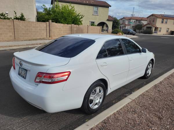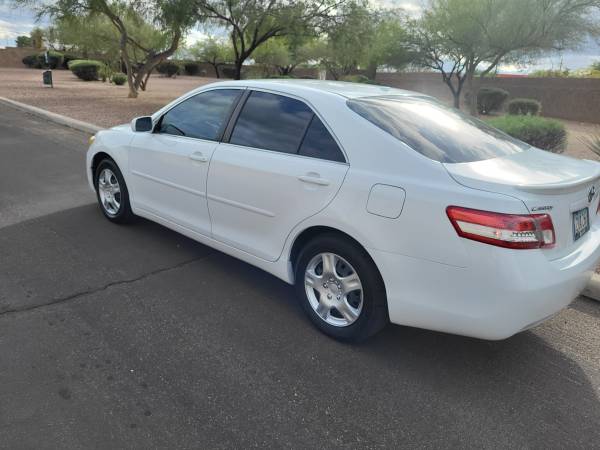 Hello we are selling our 2010 Toyota Camry LE ,has only 115,000 actual Miles,clean Title ,clean Carfax ,zero accidents,inside of the car is very clean,the paint is in excellent shape,this vehicle has been garage parked when not on the road,remote alarm,power seats,cruise control,4 cylinder engine ,very economical,recieved a complete Tune up ,which included ,new spark plugs,new shocks all engine/transmission fluid changes are current ,just passed emissions,we can share a copy of the current carfax and most recent invoice of maintenance history,this Camry has been meticulously maintained,has no mechanical isssues,tires are fairly new,blows ice cold ac,an heater works,all functions work in this vehicle ,feel free to bring your mechanic if you like,we are asking $9,200 Or Best Offer please call or text show contact info