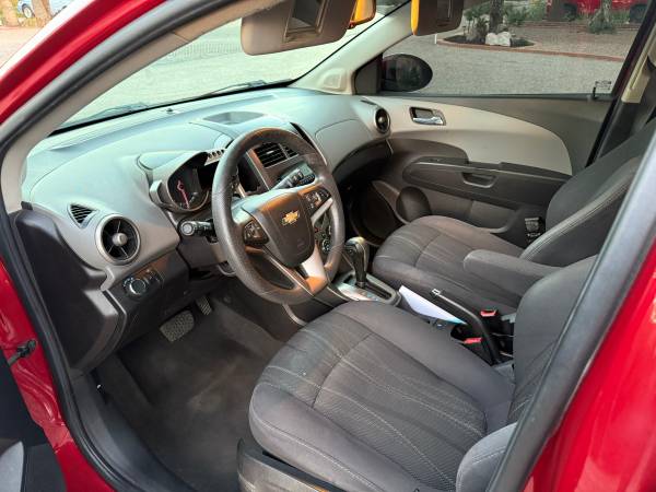 2014 Chevy Sonic LT 1.8L automatic transmission with only 72 thousand miles. Super clean inside and out absolutly no issues at all. Its always been maintained as called for, oil change was just done. All 4 tires were replaced couple months back still in great shape. Ac blows Ice cold. Has power windows, locks, mirrors and remote start as well. Clean az title in hand asking $7500 if interested send me a text message at (520-353-18Two8)