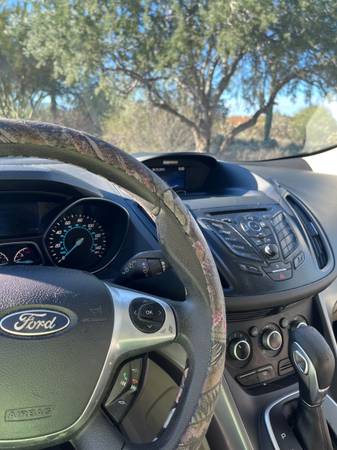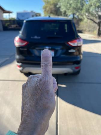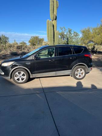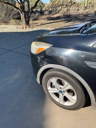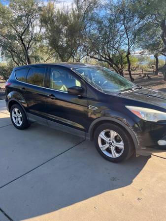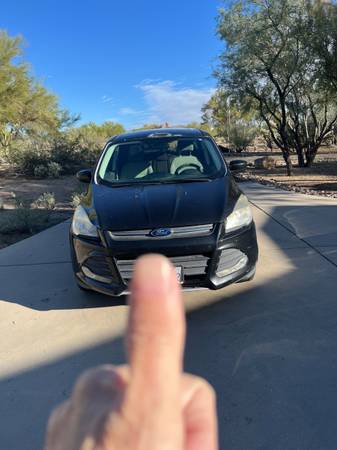 2014 Ford escape SE sport utility 4D. with 150,000 miles on it. We are the second owner. we have maintained the car regularly. It has a small dent on the front left fender and a scratch on the right front fender and some fading on the top of the car. But it’s been a very reliable car for us. Never been an accident just scratched up when parking.