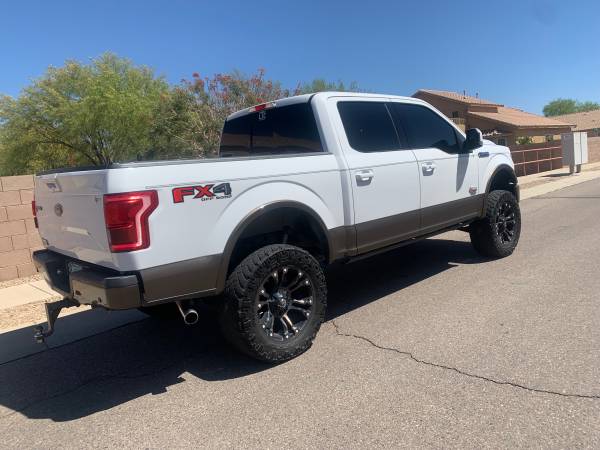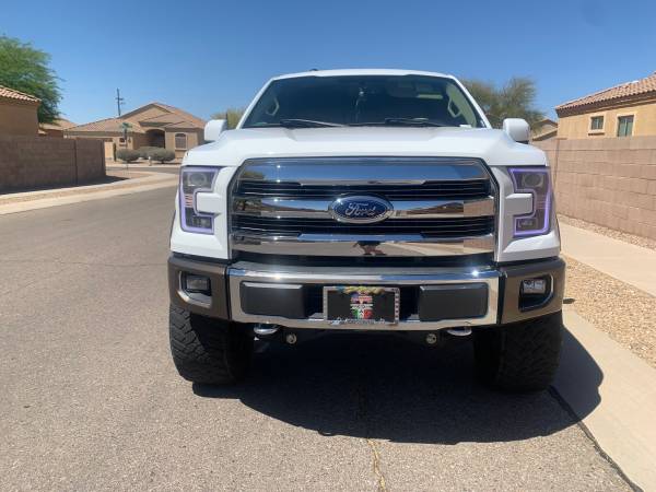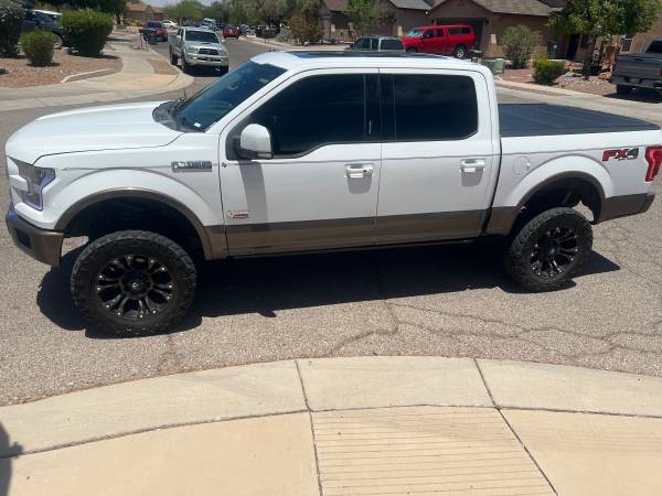 2015 Ford F-150 Lariat 4x4 Texas edition.140k 3.5 eco boost twin turbo, automatic transmission. Restored title. Repaired correctly with new frame.2 tone paint , very nice leather double sunroof.car audio system with subs. Sliding glass rear window. Tannou cover.reverse camera.amp electric slide out steps.20” rims with 35 12 tires rims powder coated to match truck. Cold ac. Everything works. Passed emissions last week. pro comp 6”lift kit and pro comp shocks all around. Real head turner. New turbo , new cats,recent tune up,Too much to list. Over 20 k in accessories. Reason for selling is because I’m upgrading.Asking 17k.Call 520 406-323three