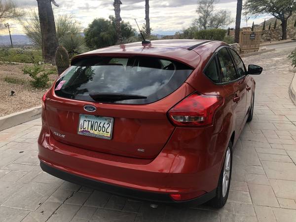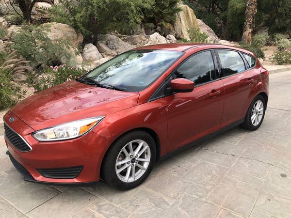 2018 Ford Focus 5 Door Hatchback SE (special edition) with Economical and Powerful 4 Cylinder and Automatic Transmission. Very Clean Car is Practically New Condition. Special Copper Metallic Factory Paint with Cloth Interior...Cool in the Tucson Climate. Power Everything with all the Convenience and Safety Options Available. Backup Camera in Dash. Factory Ford Esync Bluetooth System Pairs Wirelessly with your Apple CarPlay and Android Auto Devices for Hands Free Phone, Apps, Music and Navigation through the Factory Hi Fi System. Mature Owner, Freshly Serviced with New Tires, Glass is all Perfect. This is One Clean Owner Pampered Low Mileage Crossover Hatchback Ready to Go Anywhere in Style. Clean Title in Hand.