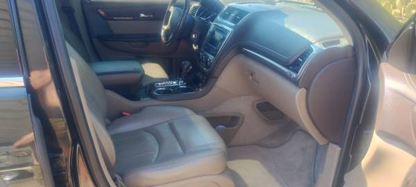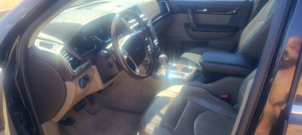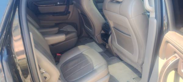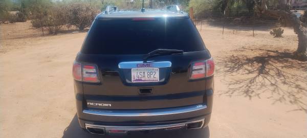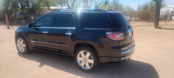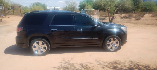 Today we are selling our 2014 GMC Arcadia Denali SUV this suv is fully loaded garage kept all its life no accidents clean record power seats power and windows GPS touch backup camera side to side sensors screen CD player in the back just have the whole AC re serviced also has AC in the back also just put on brand new tires from discount I have receipts for everything that's been done to this car it has a V6 engine automatic just have the windows tinted whole new front end put on last week I have receipts for everything since we own this vehicle we are the second owners it's been a great vehicle I also have the tow package unfortunately we bought a brand new truck no longer need this one we're asking $6500 cash clean title with records and two keys automatic start button just a beautiful Denali give me a call show contact info