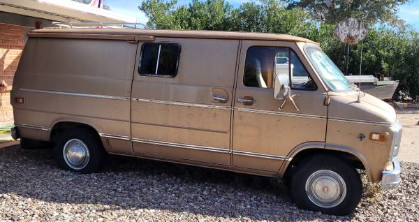1979 Chevy Van, 158,000 miles, one owner, good condition, not driven for 10 years, 4 captain chairs-2 swivel, 350 engine, V8, Short Block and Transmission changed out at 100,000 miles - $1000. Sound...