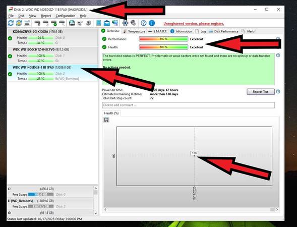 * 1x) 14TB WD ELEMENTS EXTERNAL HDD