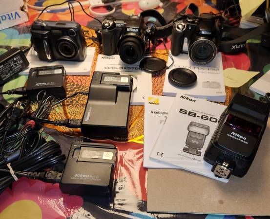 Have most manuals, battery chargers and extra batteries, with memory cards.