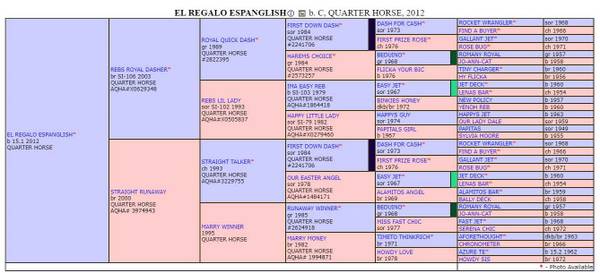 Temperament, trainability, speed and quality. "Espanglish" is descended from Dash for Cash/First Down Dash and Runaway Winner. He went 2-1-2 in five starts (retired due to injury). Progeny are racing and in training for roping and barrels. His colts have his good mind and genuinely agreeable/willing disposition. If you're looking to breed a foal you can prep for performance, Espanglish is standing in Douglas, AZ. 16.2 HH, 5-panel N/N. Breeding fee: $850.