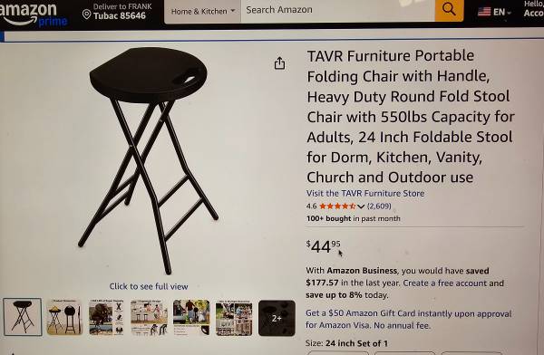 TAVR Furniture Portable Folding Chair with Handle, Heavy Duty Round Fold Stool Chair with 550lbs Capacity for Adults, 24 Inch Foldable Stool for Dorm, Kitchen, Vanity, Church and Outdoor use
