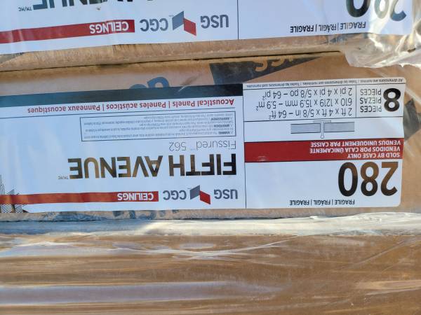 20+ cases of Armstrong tiles, some cases were damaged in transit. The pallet is mixed large rectangle ones and the smaller squares