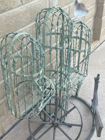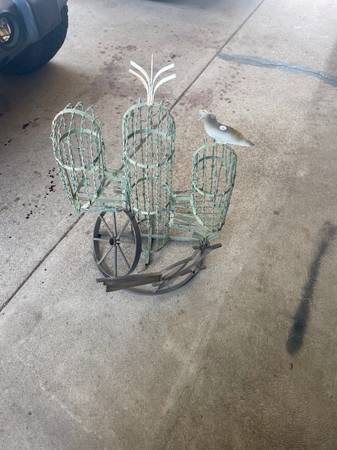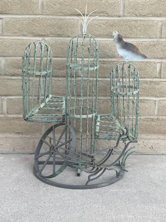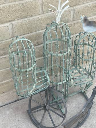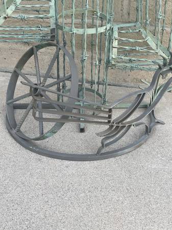 Awesome saguaro Metal yard art. The detail in this piece is amazing. Has Barbwire for the ribs of the saguaro.With solid steel construction into a road runner and wagon wheel. The piece is almost 3 foot tall and weighs close to 30 pounds. Must see to appreciate. 33 inches tall 23 inches wide 22 inches deep.