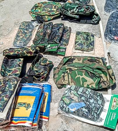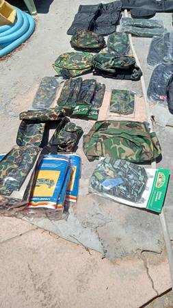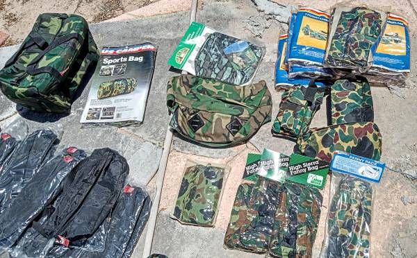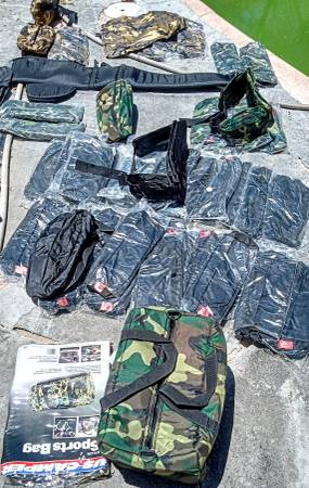 Have 81 pieces of camouflage or black fanny packs, belt packs, backpacks, and additional pieces.