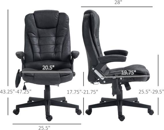 HOMCOM 6 Point Vibrating Massage Office Chair with Heat, Microfiber High Back Executive Office Chair with Reclining Backrest, Padded Armrests and Remote, Black $100