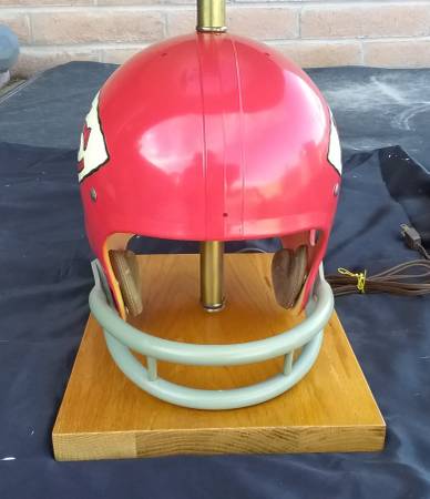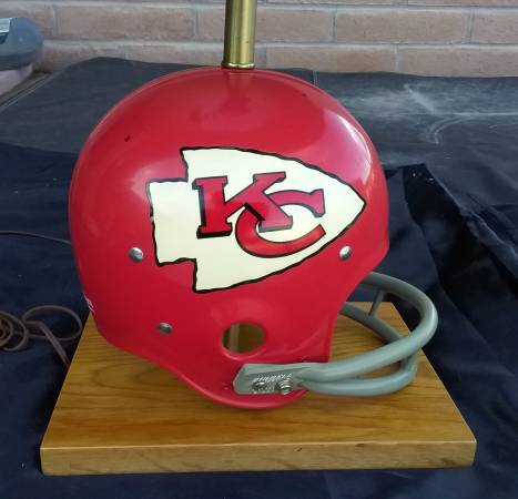 For Sale: Excellent condition Vintage 1960's Kansas City Chiefs helmet table lamp. This lamp includes a full size replica Chiefs helmet and an even rarer original lamp shade. This lamp is like 65 years old! Works perfectly. A must for the True fans home or office. Asking $200 O.B.O Call or prefer text Tim @ show contact info