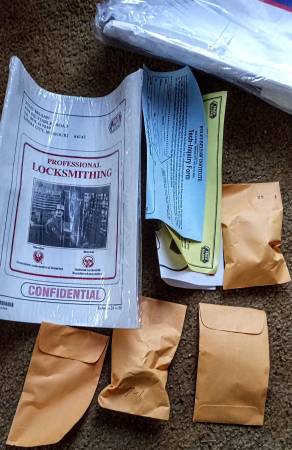 I also have the last 5-lessons still shrink-wrapped as they came as well as some practice blanks and locks to work on. I would sell that group for $100. After you sent your practice pieces back you got your diploma as a Certified Locksmith.