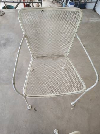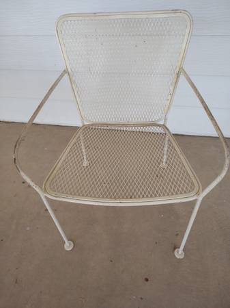 Mid century modern..white wrought iron mesh 5 chairs and a 42inch diameter table in very good condition.
