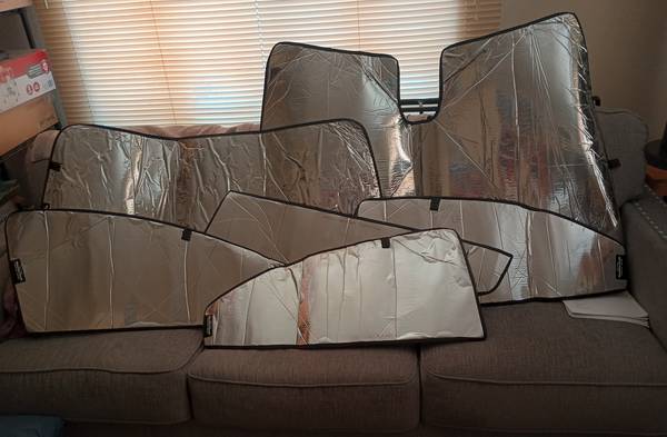 Have a complete full vehicle sun shade kit from Weather Tech and as you know these are precisely laser measured for perfect fit, this one fits 2020 & 2021 Corolla perfectly and may even fit other years but not quite as snug, these are in same excellent condition as new, as there is little to no wear and tear from usage on these shades, I paid $139.99 inc tax & shipping and I'm asking $85 so you save $55 and have the same product as if you purchased them yourself, have the original box and sale receipt which Im including is picture section, please call after 10am at show contact info
