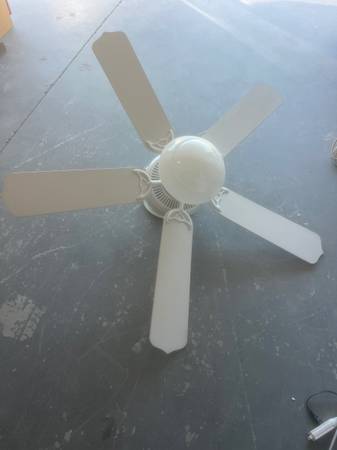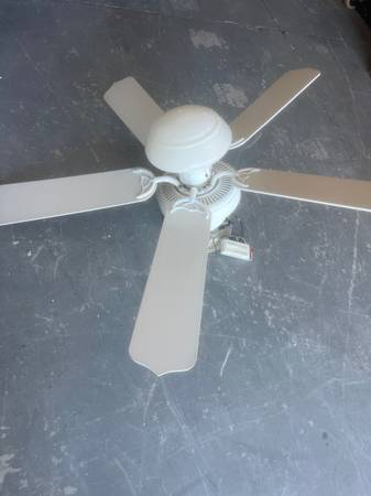This is a white 3 speed fan light with remote. 21” fans. Works great. We are remodeling. $25.00.