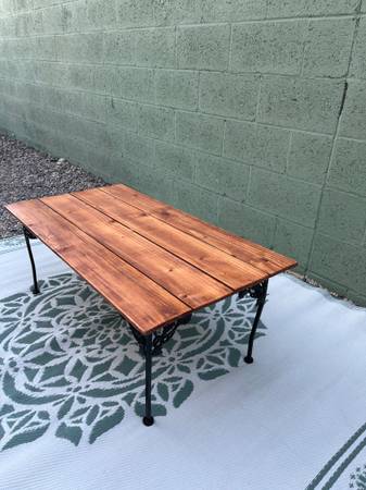 Great accent or coffee table perfect for covered patio, balcony, den or living room. Measurements 40” long, 21 1/2” wide, 15 1/2” high. Call/text (520)30six-62four6.