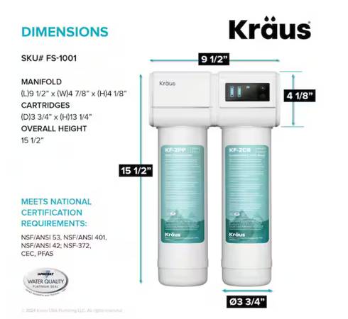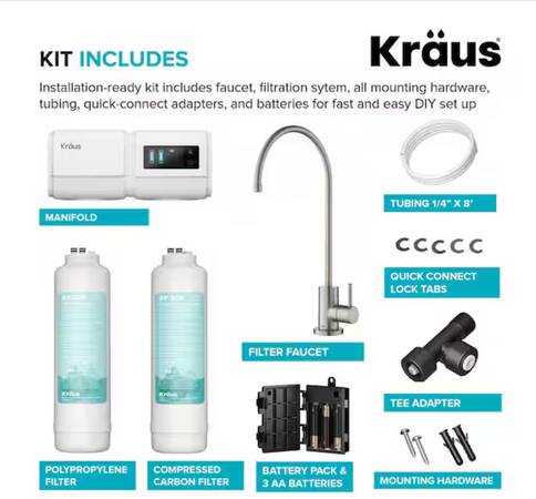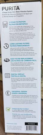 Get clean great-tasting water w/ filtration system and faucet kit. 2-stage filtration reduces lead up to 97%, chemicals, pharma, VOC. Easily replace filter cartridges without disconnecting waterlines. Digital display. New, never been used. Located in Oro Valley, cash only.