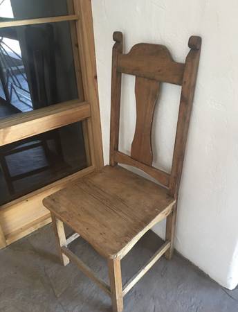 Nice Heavy Mesquite desk or side chair. Sturdy. All pegged seat Same one is in the Desert Art Museum as shown in last picture. Measures 45.5" to top of chair, width is 18" Seat height is 18 3/4 but...