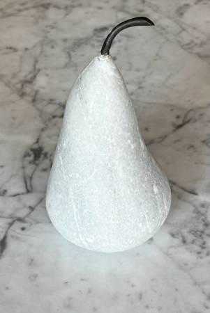 Excellent condition alabaster marble pear with metal stem. Very heavy. 6.5” tall, 3.5” wide.