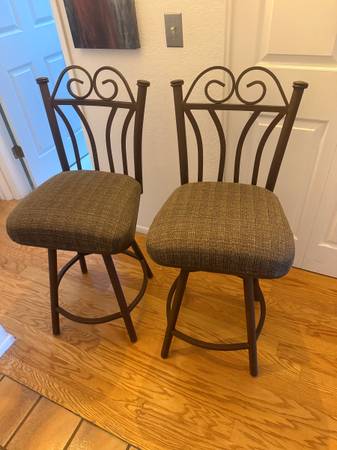 Pair of Barstools. Swivel seats. Durable, heavy metal construction $75 for both.