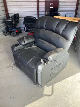 This faux leather Lift/Recliner chair is both wider and longer than the average. It also has both heat and massage built in (controlled by a second remote). Everything works great and were it not for 2 small seam separations (less than 2 inches in length), I would rate its condition as excellent!