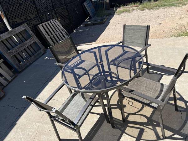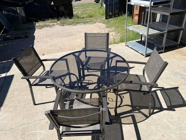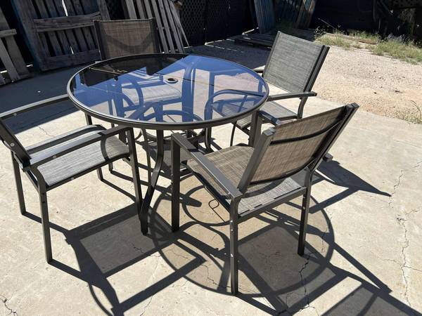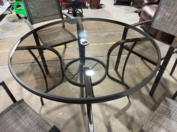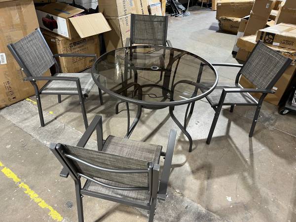 Brand New 5 Pieces Outdoor Patio Dining Set with 4 Brown Chairs and 4 Person 42 in. Round Dining Table with Bronze Smoky Glass with umbrella hole