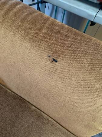Chair and ottoman with beautiful wood accent. This is in good condition with one little blemish in the last picture.