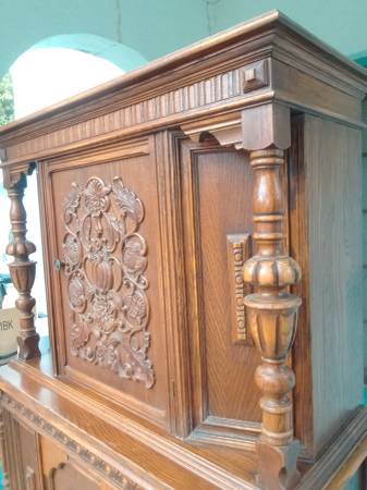 Oak court cabinet ... (china cabinet / tall-chest / sideboard) "Armoire à deux corps" Oak 40W x 17.5D x 63H $355 Text or email Andrew