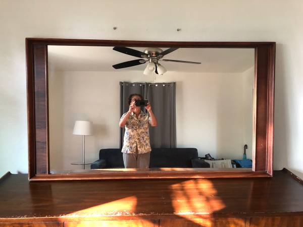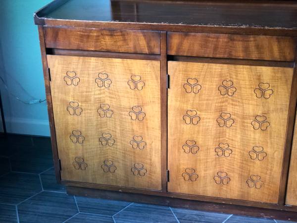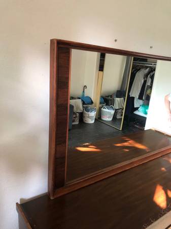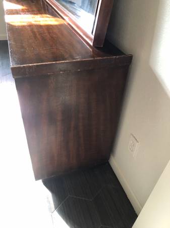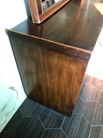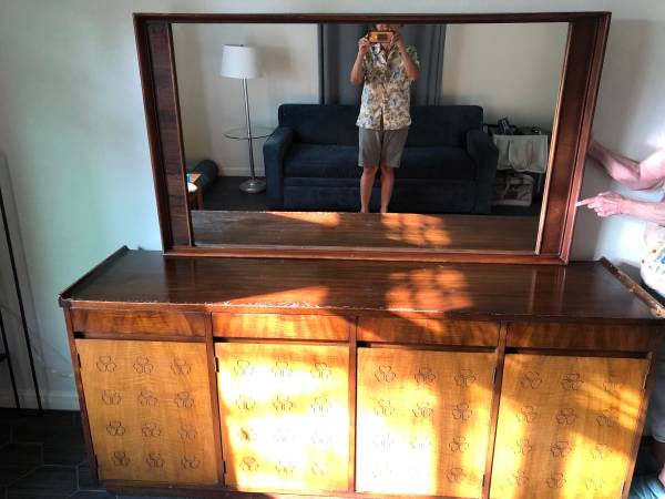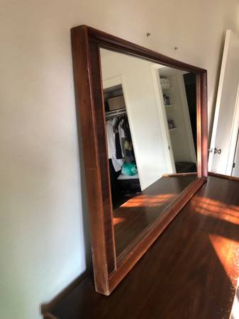 John Widdicomb Solid wood Credenza 72” L x 19” W x 32” W Mirror Wood framed 60” L x 2” W x 33.5” H $150 for both pieces