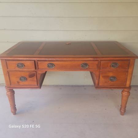 Beautiful, vintage desk for sale. Solid, hard wood, cherry veneer w/ leather work pad. Four drawers. Price firm.