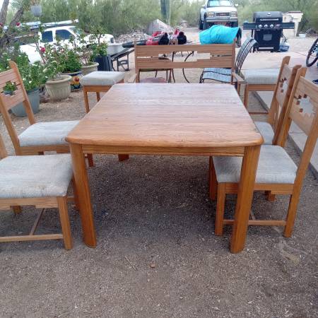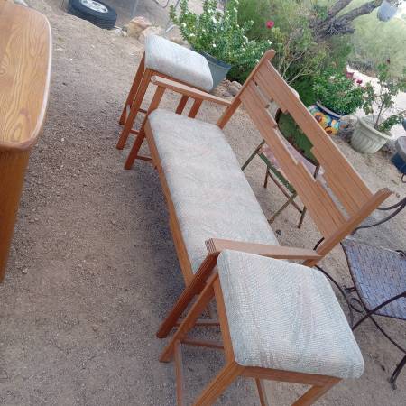 LOCALS ONLY NO SCAMMER PLEASE Solid oak dining table chairs,bench, and two bar stools