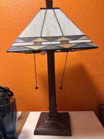 white dresser & night stand, $120 lamp with white shade $30 tiffany style lamp $45 black tall lamp w/ spotlights $15 round usb charge nightstand $20 vacuum $40 green granite table $85 Also :...