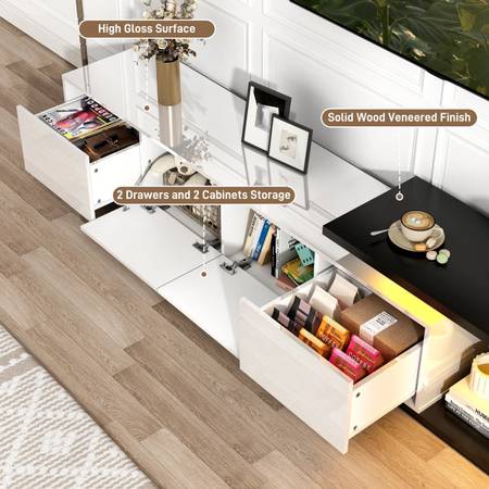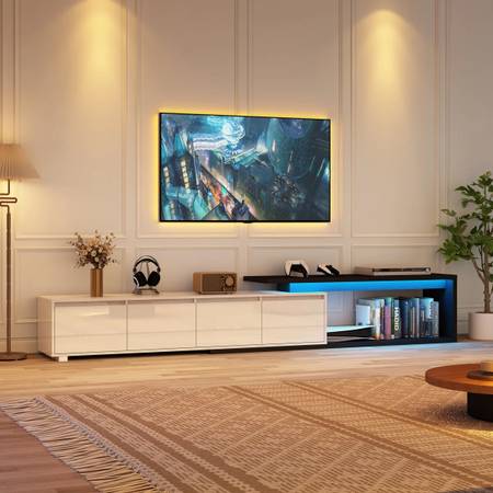 75"-110" Extendable TV Stand With LED Light With 2 Drawers And 2 Cabinets