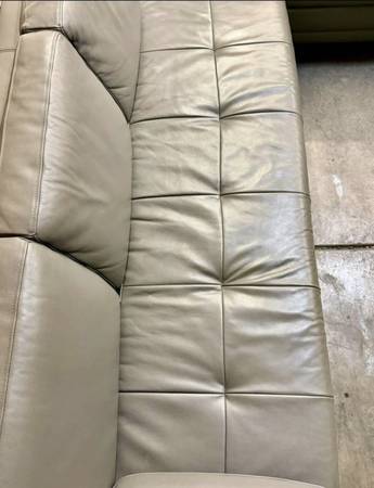 The sharp clean lines and durable Italian leather make this the perfect mid century sectional you always wanted! Grey in color so very neutral.