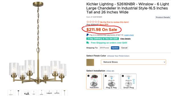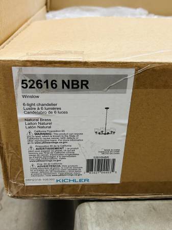 Beautiful chandelier, never taken out of the box, got as a gift. Winslow 6-light. Comes with manual and all the original install accessories. You can check it out first, if you like.