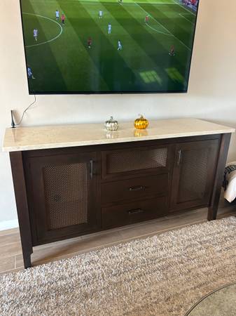 Beautiful heavy-duty marble credenza, the marble itself is over an inch thick was bought for $4000.00 in 2024. Payment to be made in cash only no exceptions!!