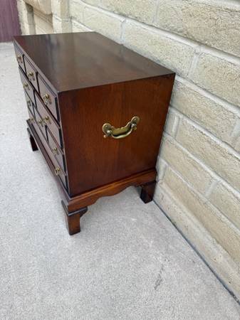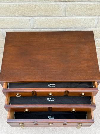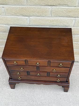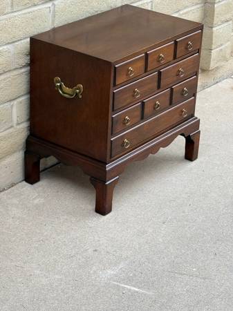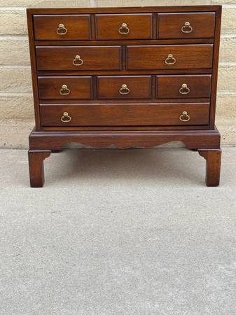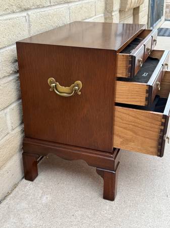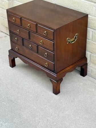 Lovely silver chest made by Hickory chair company. Three beautiful drawers lined with utensil holders and dust cloth which are removable. Awesome hardware and craftsmanship throughout. 22 inches...