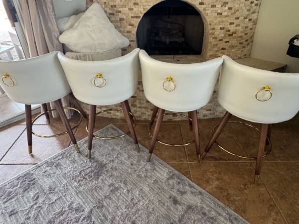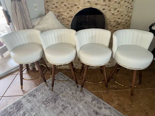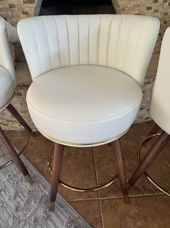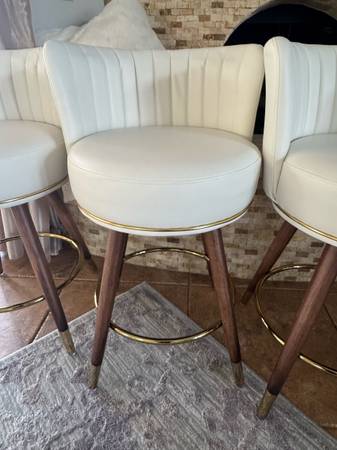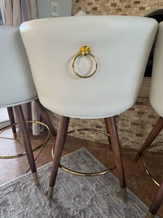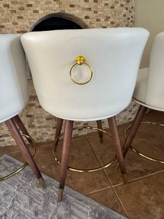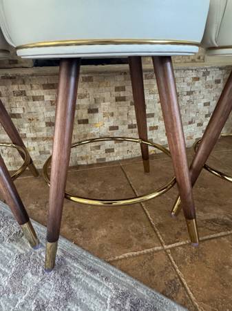New-Counter Height Bar Stools Set of 4 24 inch height Cream leather Gold detail wooden legs Swivel Text