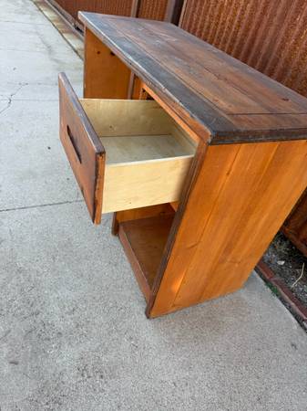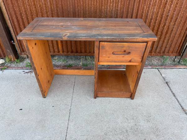 Rustic wood Desk. $37. Real wood. Sturdy. One drawer. Great candidate for makeover. 43 inches long. 18 inches wide. 30 inches high. ><> All offers will be considered. We are located at...