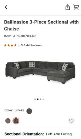 Sectional Couch with Chaise for sale for $800. Very lightly used & in excellent condition. Purchased from Ashley Furniture in 2020. Smoke-free & pet free home. Contact if interested. First...