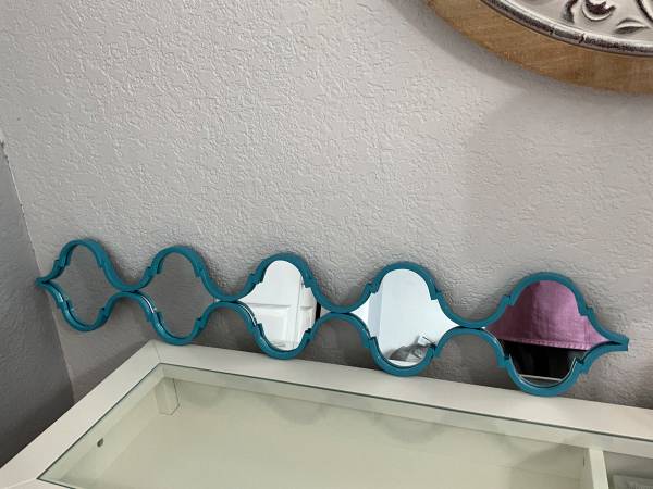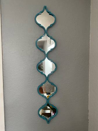 Up for sale blue tear drop mirror. New condition. Size is 35-L x 6-W. Please call or text if interested.